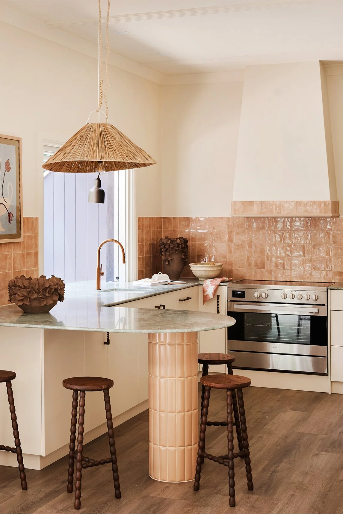 How we did it: We skipped joinery doors and used full-height curtains instead, which softens the rooms and adds that relaxed, layered vibe we love. And added super cute curvy pelmet details for full luxe vibes.