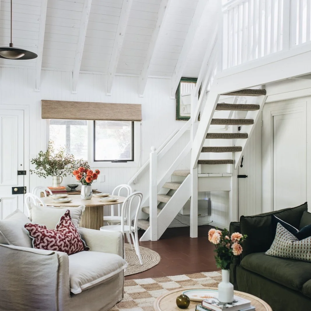 The first dwelling was The Lodge, a character-filled four-bedroom weatherboard home. The second was The Cottage, an adorable two-bedroom A-frame that was brimming with potential. Both homes had great bones, but they were tired and in need of the loving touch of someone with vision.
