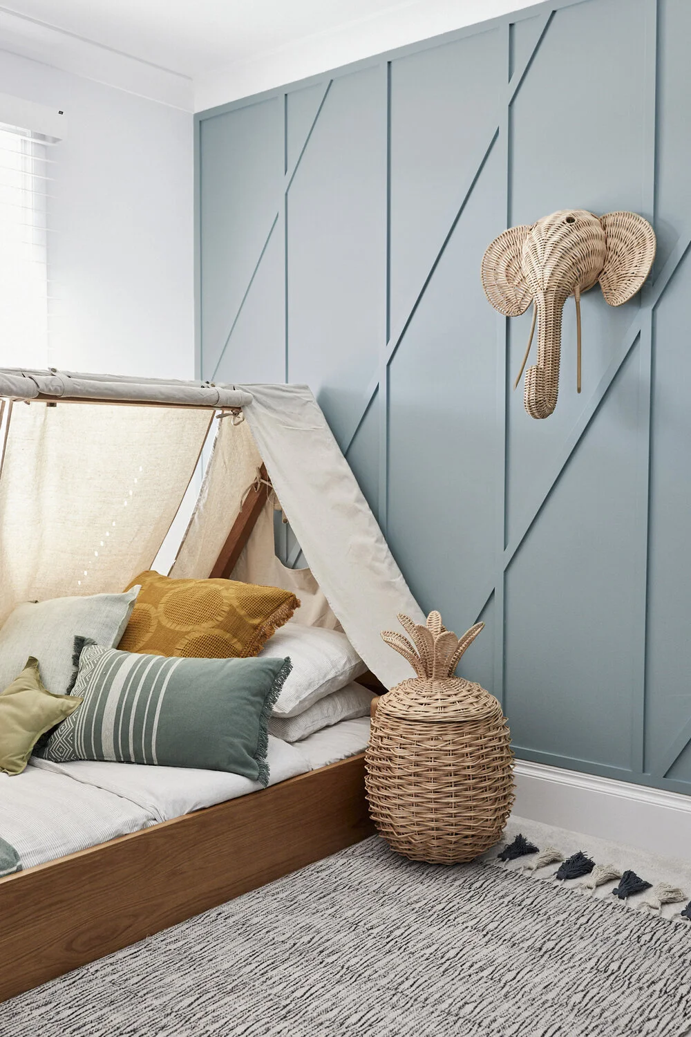 The pendant light over the dining nook! It softens the whole room and just looks beautiful whether it’s on or not. The tiles and tapware in the kids’ bathroom are my favourite in the house. I love sitting in the bath and taking in all the details. And the artwork, that’s all gorgeous. Oh, and the Caesarstone bench in the kitchen… I just love it all!