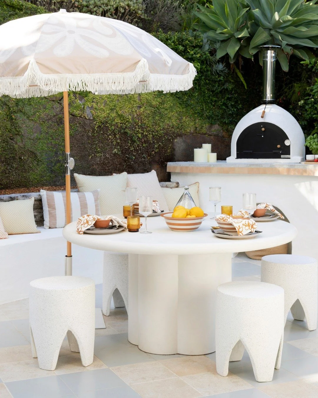 House 13 is home to Bonnie's right-hand woman, Three Birds Designer, Louisa, and her family, including two young boys. The family had high aspirations for travelling the world, which isn’t currently on the cards, so their home is designed to be their dream holiday, brought to life at home. Every part of it is inspired by holiday destinations and design elements from around the world, all anchored by the stunning location, with views to the Australian bush from every room.