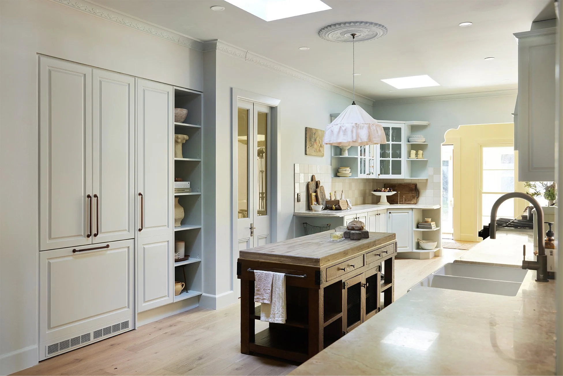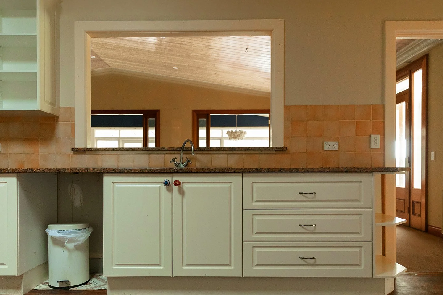 This dated ’90s kitchen sat smack-bang in the middle of a much-loved family weekender and couldn’t be moved, so we worked with the existing footprint to reimagine every inch.